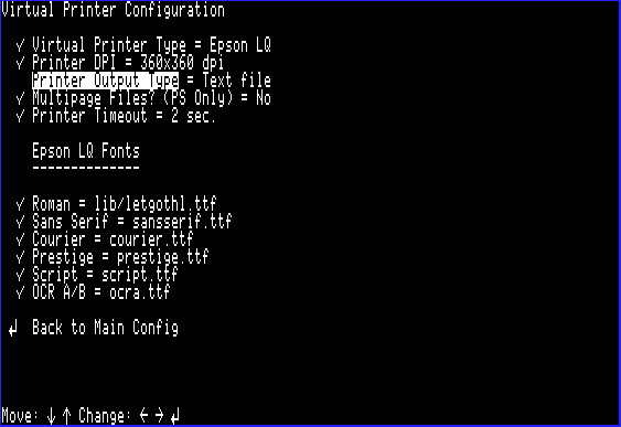 Next, navigate back to the main menu and select the "Virtual Printer Configuration" option and set "Printer Output Type" to "Text file:"