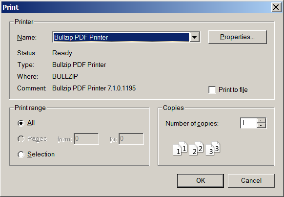 The printer you choose here will be the place that page-oriented output is sent, subject to the page ejection timeouts discussed earlier. Note that it is even possible to use a printer driver that itself produces PDF output instead of physical paper.