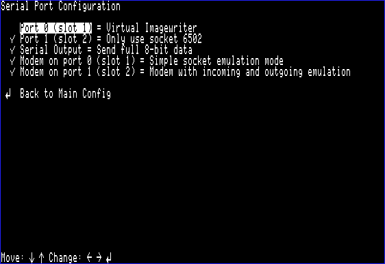 Press F4 to enter the text-based GSport menu and select the "Parallel Card Configuration" option. By default, printer emulation is turned off. Enable it by setting "Parallel Card in Slot 1" to "On." Also change the "Parallel Output" option to "Mask off high bit:"